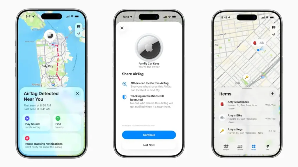 - สำหรับระบบความปลอดภัย AirTag2 ออกแบบด้วยการคำนึงถึงการเก็บรักษาข้อมูลตำแหน่งที่ตั้งให้เป็นส่วนตัวและปลอดภัย AirTag จะไม่จัดเก็บข้อมูลตำแหน่งที่ตั้งหรือประวัติบนอุปกรณ์บนเครื่อง และการเข้ารหัสตั้งแต่ต้นทางจนถึงปลายทางจะปกป้องการสื่อสารทุกรายการ ทำให้มั่นใจได้ว่ามีเพียงเจ้าของอุปกรณ์เท่านั้นที่สามารถเข้าถึงข้อมูลตำแหน่งที่ตั้งได้ Apple ยังย้ำว่า AirTag2 ไม่ได้ออกแบบมาเพื่อใช้ติดตามคนหรือสัตว์เลี้ยง จึงมีชุดการป้องกันการติดตามที่ไม่พึงประสงค์เป็นครั้งแรกของวงการ รวมถึงการแจ้งเตือนข้ามแพลตฟอร์มและหมายเลขระบุเอกลักษณ์บลูทูธที่ไม่ซ้ำกันซึ่งจะเปลี่ยนบ่อยๆ