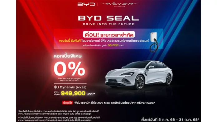 บริษัท เรเว่ ออโตโมทีฟ จำกัด จัดแคมเปญนี้ขึ้นเพื่อส่งเสริมการขายรถยนต์ไฟฟ้า BYD SEAL MY 23 รุ่น Dynamic หรือรุ่น Premium หรือรุ่น AWD Performance  สามารถเข้าร่วมแคมเปญได้ตั้งแต่วันที่ 531 ก.ค.68